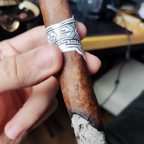 Queima irregular. Fluxo bom. Charuto suave a médio. A frio aroma de chocolate amargo. No primeiro terço os aromas a frio persistem. Compraria com certeza novamente pelo mesmo preço. O primeiro terço foi o mais saboroso, mas não se manteve até o final. Não evolui e se apresenta um pouco picante do início ao fim porém não amarga. Nota: 7.90 |